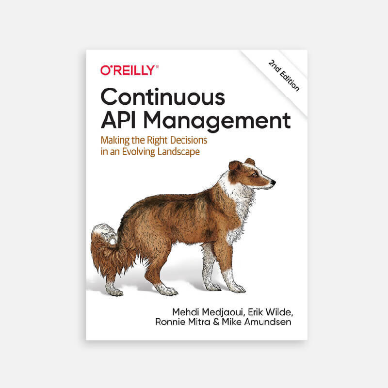 | | | Continuous API Management How do you balance the desire for agility and speed with the need for robust and scalable operations? Four experts from the API Academy show software architects, program directors, and product owners how to maximize the value of their APIs by managing them as products through a continuous lifecycle.