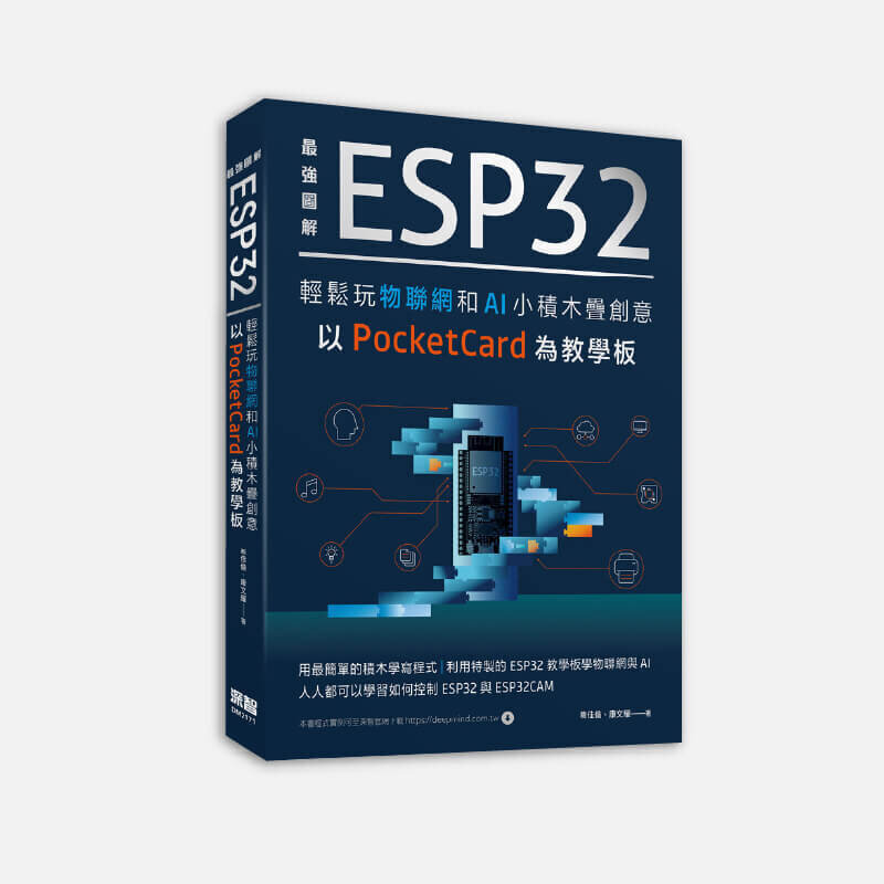 | | | 最強圖解 ESP32 輕鬆玩物聯網和 AI 小積木疊創意以 PocketCard 為教學板 用最簡單的積木學寫程式,利用特製的ESP32教學板學物聯網與AI,人人都可以學習如何控制ESP32與ESP32CAM。本書以初學者常用的Blockly積木來控制ESP32開發板,為了讓初學者可以快速上手,本書使用了凱斯電子的ESP32開發板─PocketCard,透過本書,你將可以快速學習物聯網、AI等ESP32與 ESP32CAM技術。
