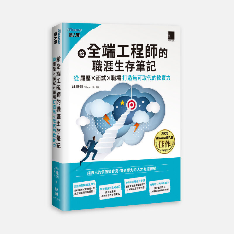 | | 給全端工程師的職涯生存筆記:從「履歷×面試×職場」打造無可取代的軟實力(iThome鐵人賽系列書) 本書從三個面向讓你取得自己應有的價值!有人的地方就會有江湖,公司也是江湖的縮影;職場並非埋頭苦幹就能有收穫的地方。在人才市場上,「人」就是商品,包裝精美的容易溢價,賣相較差的容易折價。不要期待公司主動理解你的內涵、看到你的成果、給你想要的專案。所有想要的一切都要靠自己主動爭取,在職場懂得「包裝」才有更多機會!