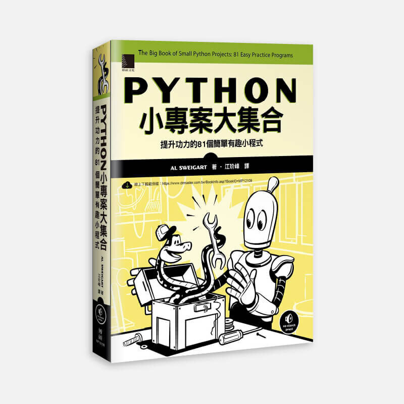 | | Python 小專案大集合:提升功力的 81個簡單有趣小程式 如果你掌握了基本的 Python 語法並準備開始撰寫程式,那麼你將發現本書既能啟發你又好玩!本書包含了 81 個 Python 程式專案,能讓你立即學會製作數字藝術、遊戲、動畫、計數程式等專案。了解程式碼的工作原理後,你將會練習重新建立程式,並且增加自己定義的操作來進行實驗。這些以文字為基礎的簡單程式只需要 256 行或更少的程式碼。無論是經典的螢幕保護程式、蝸牛賽車遊戲、點擊誘餌標題生成器還是動畫 DNA 雙螺旋,每個專案都是設計成可以獨立運作的程式,因此你可以輕鬆在網路上分享它們。