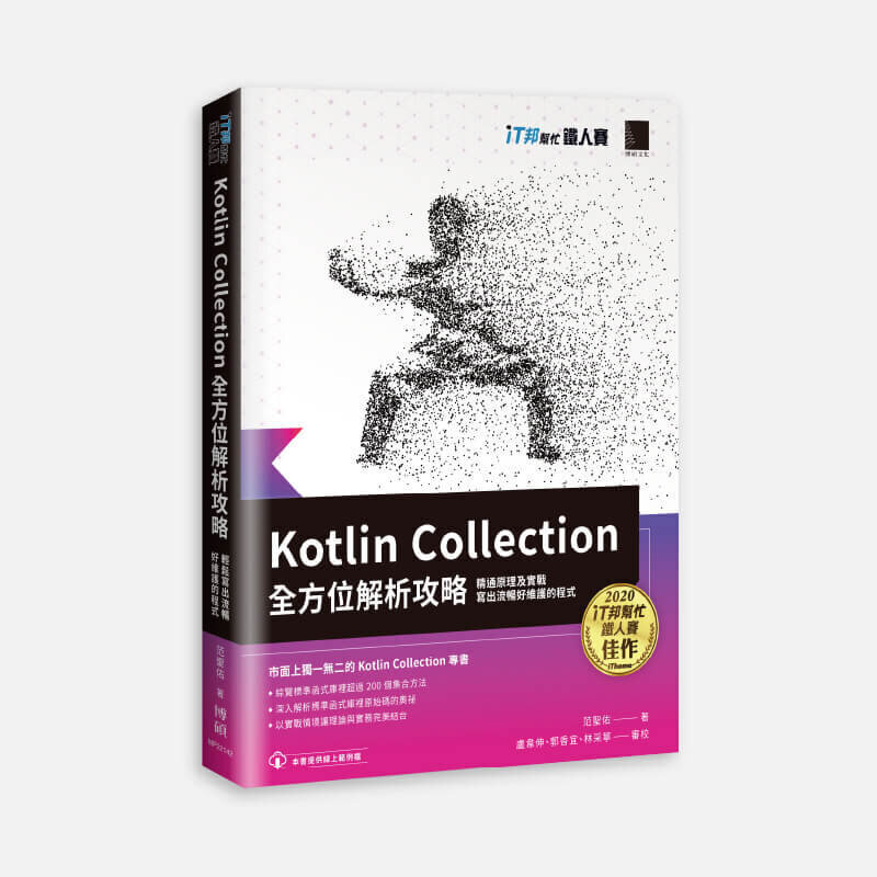 | | | Kotlin Collection 全方位解析攻略 : 精通原理及實戰,寫出流暢好維護的程式 集合(Collection)是各程式語言裡常見的資料類別,在 Kotlin 裡共有 Array、List、Set 及 Map 四種,在標準函式庫裡提供一系列設計精妙的集合 API,若能好好運用,可以減少很多重複冗長的工作,對操作資料有很大的幫助。本書專為 Kotlin 開發者設計,透過技法、心法、實戰三部份,系統化的解釋 Kotlin 集合的原理、功能及應用,是一本 Kotlin 開發者桌上必備的工具書。