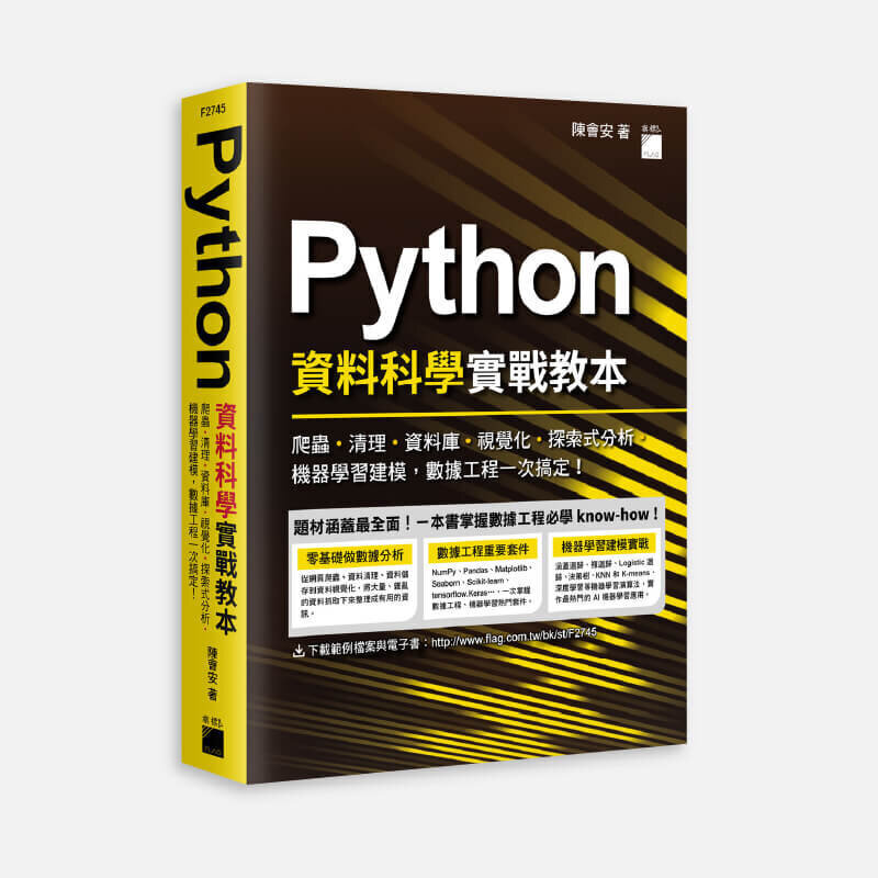 Python 資料科學實戰教本 - 爬蟲、清理、資料庫、視覺化、探索式分析、機器學習建模,數據工程一次搞定!