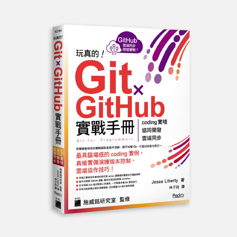 | | 玩真的!Git ✕ GitHub 實戰手冊 - coding 實境、協同開發、雲端同步, 用最具臨場感的開發實例紮實學會! 根據知名開發者論壇 Stack Overflow 的最新統計, 有 83% 的開發者會使用版本控制 (version control) 工具來管控程式, 當中更高達 93.87% 是使用 Git 這套工具來做;而用 Git 通常也會接觸的 GitHub 網站更被視為求職重要的技術履歷 & 線上作品集, 市場說了算, 熟悉 Git、GitHub 絕對是程式開發者避不掉的!在學習 Git 的管道上, 市面不乏一些教學書, 網頁文章當然也是隨便搜都有...