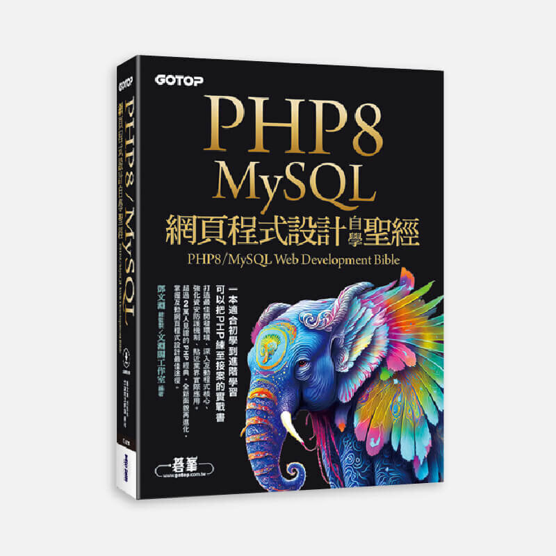 | | | PHP8/MySQL網頁程式設計自學聖經(附範例/影音) 一本適合初學到進階學習,可以把PHP練至接案的實戰書。全書完整範例/延伸練習題解/「用PHP打造一個ChatGPT聊天機器人」、「行動購物網站製作」、「LINE聊天機器人開發」影音教學。打造最佳開發環境、深入互動程式核心、強化資安防護機制、貼近業界實際應用、超過2萬人見證的PHP經典,全新面貌再進化等。依研究報告指出,全球有8成的網站互動程式是使用PHP進行開發維護,連當今熱門的網站架設平台WordPress也是以PHP基礎開發而成,證明了PHP無可撼動的地位。