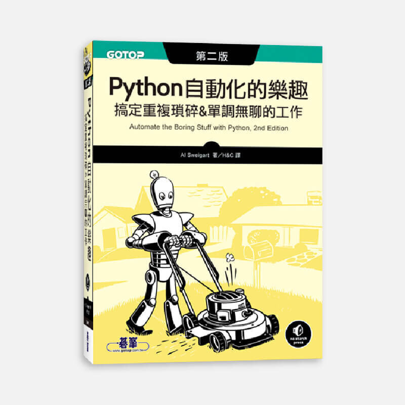 | | | Python 自動化的樂趣 第二版 如果您曾經花費數小時處理檔案的重新命名,或更新數百個試算表內的儲存格資料,就能體會這類日常的工作有多麼單調無趣了。但假如能利用電腦自動幫您完成呢?