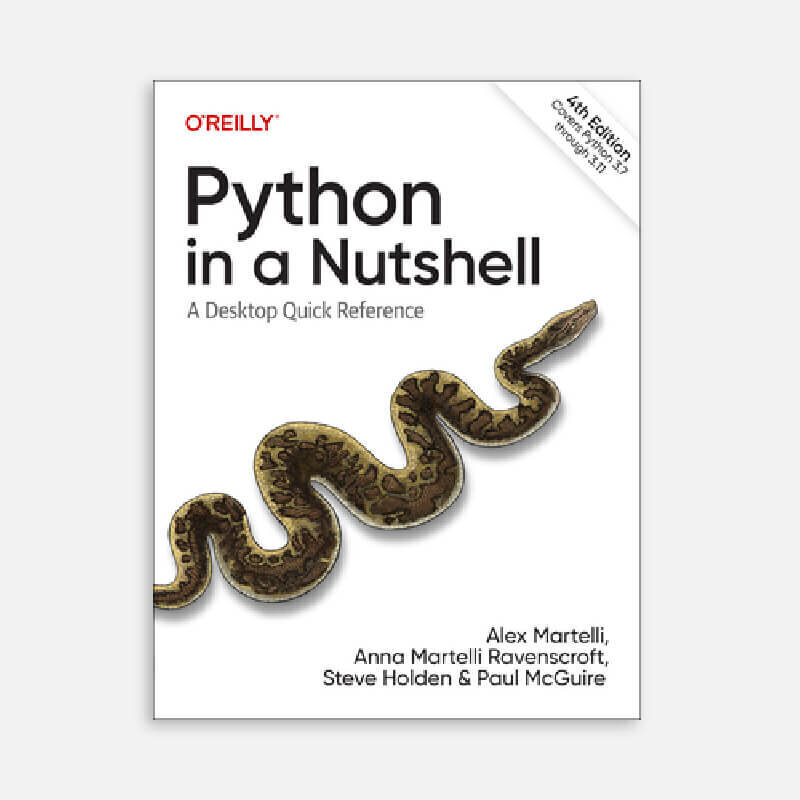 | | | Python in a Nutshell 4th Edition Python was recently ranked as today's most popular programming language on the TIOBE index, thanks to its broad applicability to design and prototyping to testing, deployment, and maintenance.