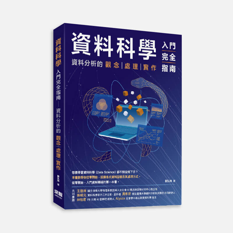 | | | 資料科學入門完全指南:資料分析的觀念 處理 實作 本書單元介紹:資料的概念:在最開始的地方,以一系列的案例讓讀者認識到資料的價值;Python 基礎:對於沒有程式基礎的讀者,會從 Python的介紹和環境安裝等。
