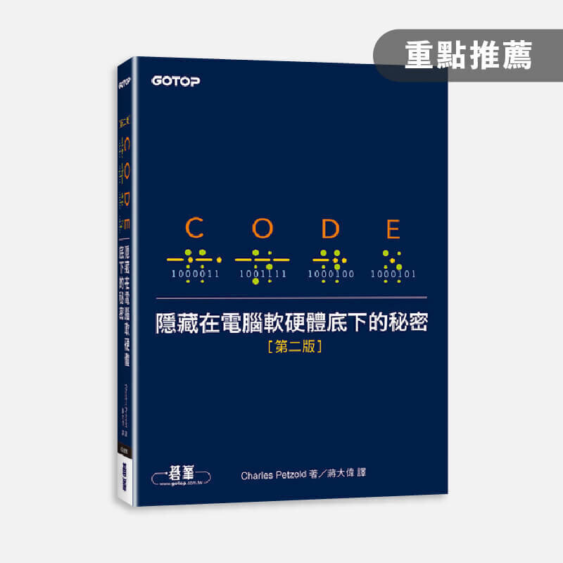 | | - 新書推薦 New Book Releases - | | Code:隱藏在電腦軟硬體底下的秘密 第二版 從簡單的時鐘滴答聲到網際網路的嗡嗡聲,本書揭示了數位革命的本質。