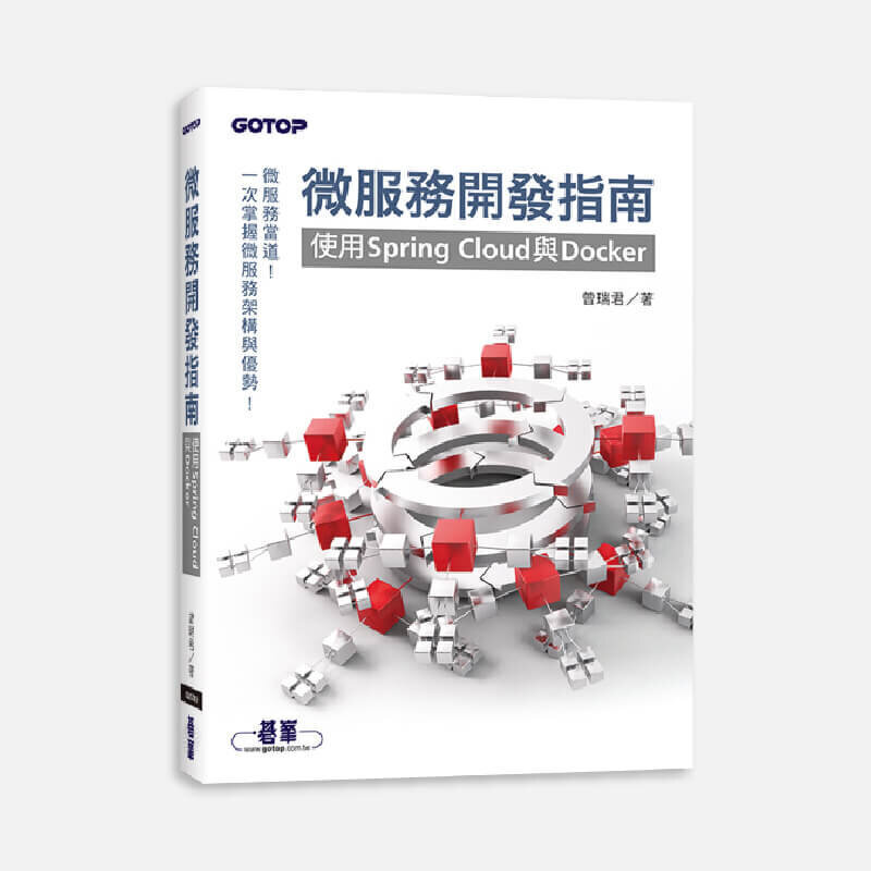 | | | 微服務開發指南|使用 Spring Cloud 與 Docker 本書介紹單體與微服務架構的差別,同時介紹建構微服務時用於解決問題的諸多設計模式。