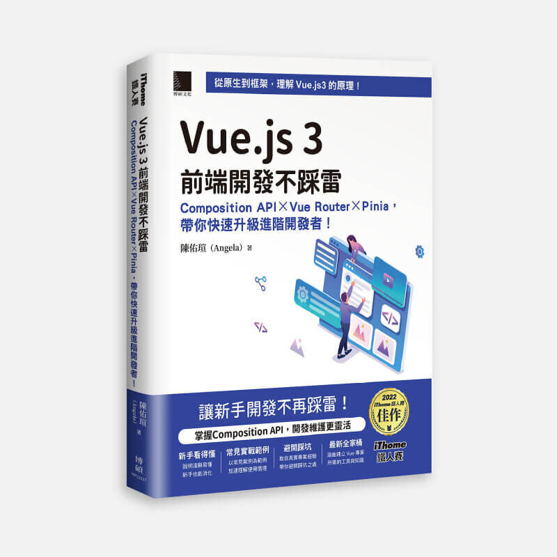 | | | Vue.js 3 前端開發不踩雷:Composition API × Vue Router × Pinia,帶你快速升級進階開發者! 本書以 Vue.js Composition API 風格為主軸,著重於扎實的基礎學習,協助讀者避開的常見雷點,提升學習與開發的效率。