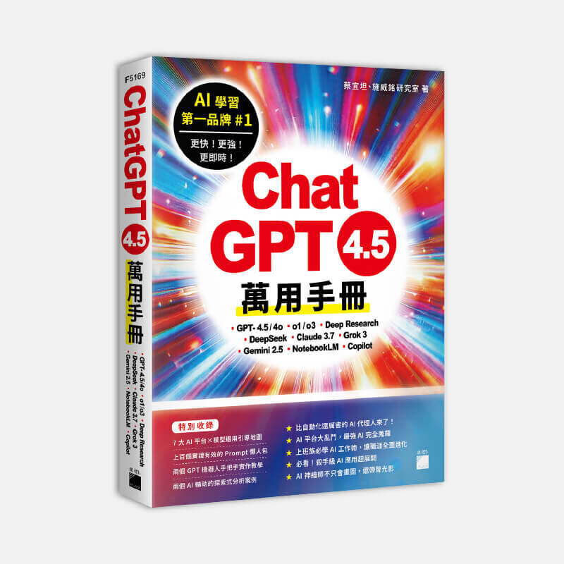 ChatGPT 4.5 萬用手冊:GPT-4.5/4o、o1/o3、Deep Research......